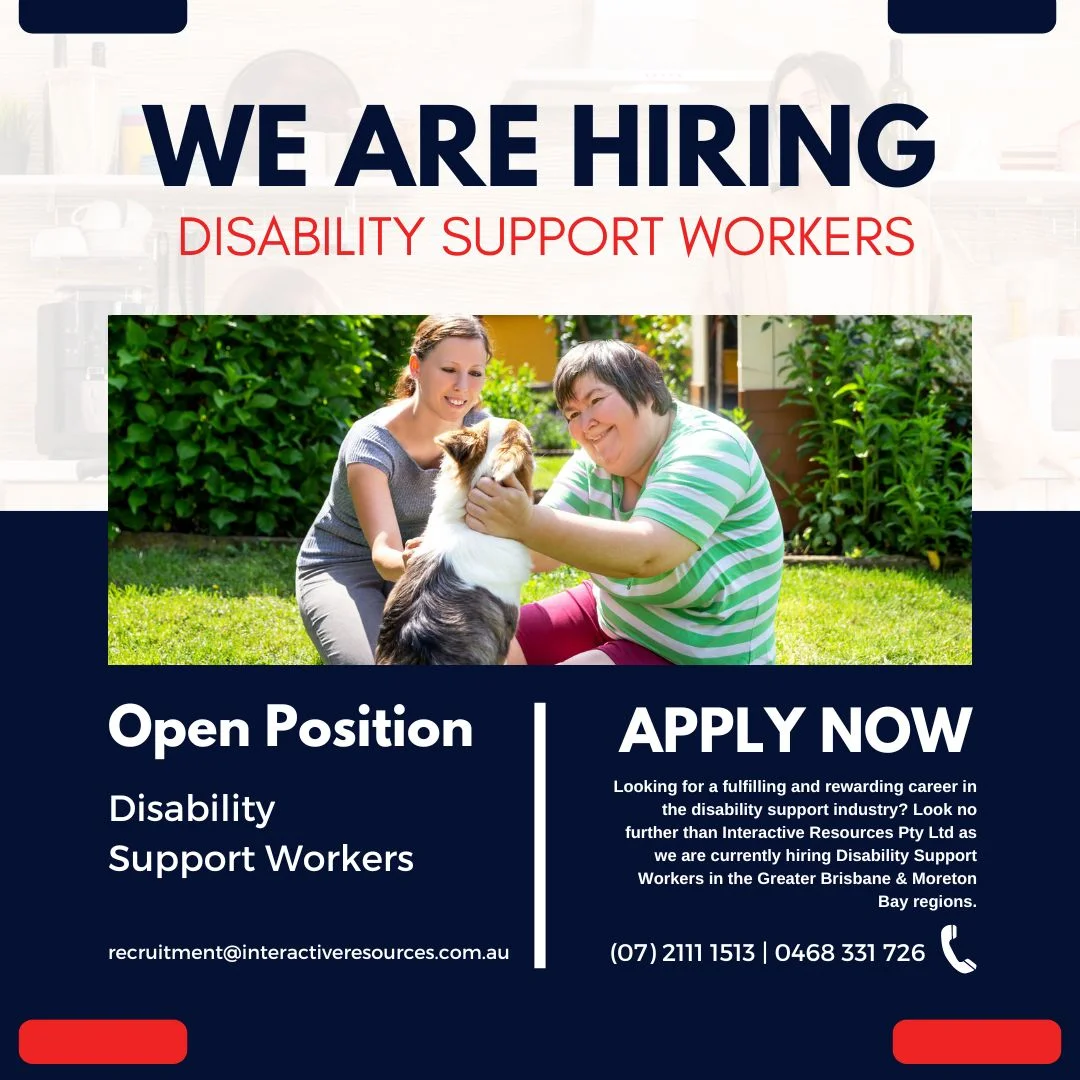 Looking for a fulfilling and rewarding career in the disability support industry? Look no further than Interactive Resources Pty Ltd as we are currently hiring Disability Support Workers in the Greater Brisbane & Moreton Bay regions.